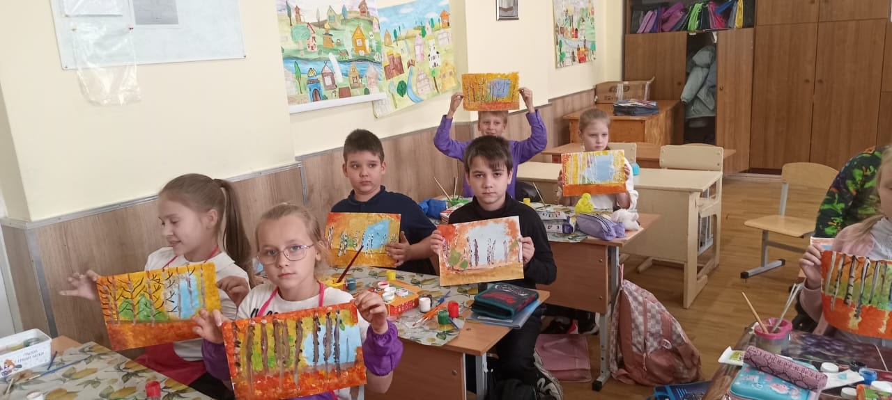 Рубрика "Таланты наших детей" Обучающиеся 3 "Б" класса (кл.руководитель Сенина Н. Е.) нарисовали пейзаж осени.