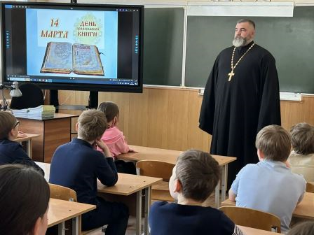 23 марта в рамках месячника Православной книги состоялась беседа Настоятеля Ильинского храма иерея Павла Дудоладова с учащимися 4-х классов. Тема беседы: «Православная книга сегодня. Добрые истории для малых ребят».