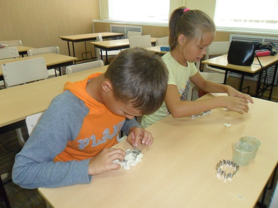 лагере "Маячок", мастер-класс "Тестопластика". Ребята