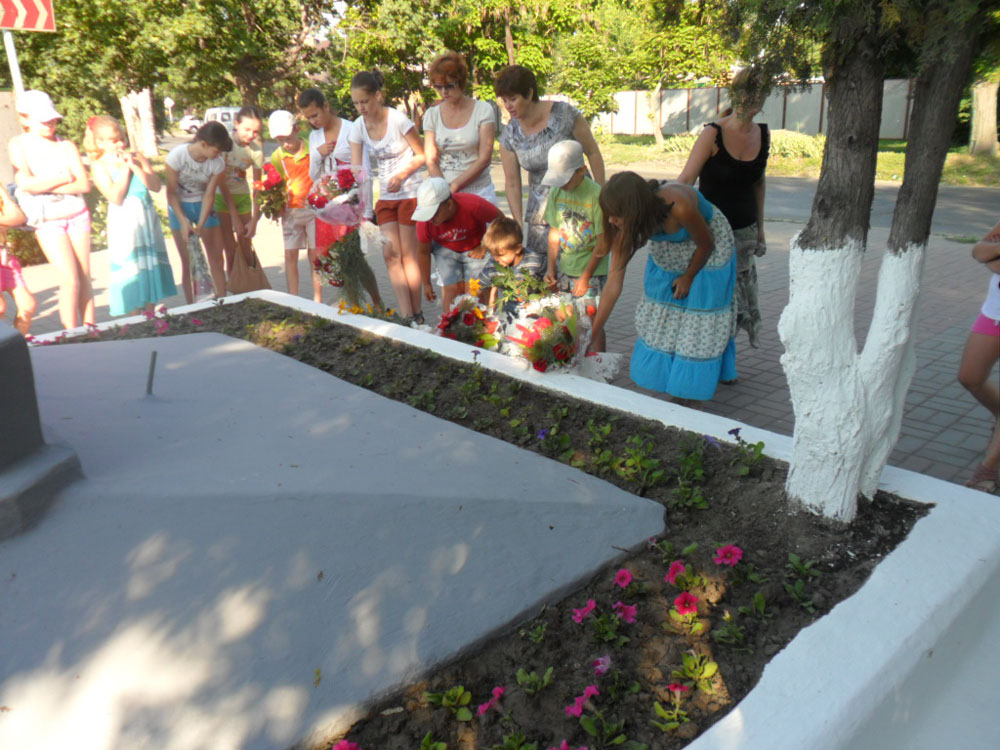 памятнику воинам, погибшим в ВОВ в День памяти и скорби.