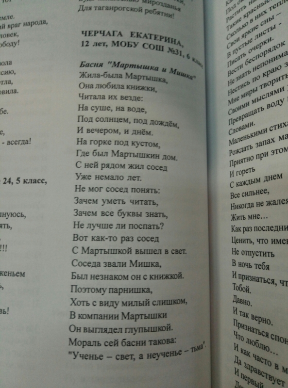 8-Б класса и делающих свои первые поэтические шаги девчонок