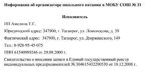 347909, ул. Бабушкина, 43, г. Таганрог, Ростовская область, Телефон/Факс: 8 (8634) 601-201, e-mail: sch31@tagobr.ru