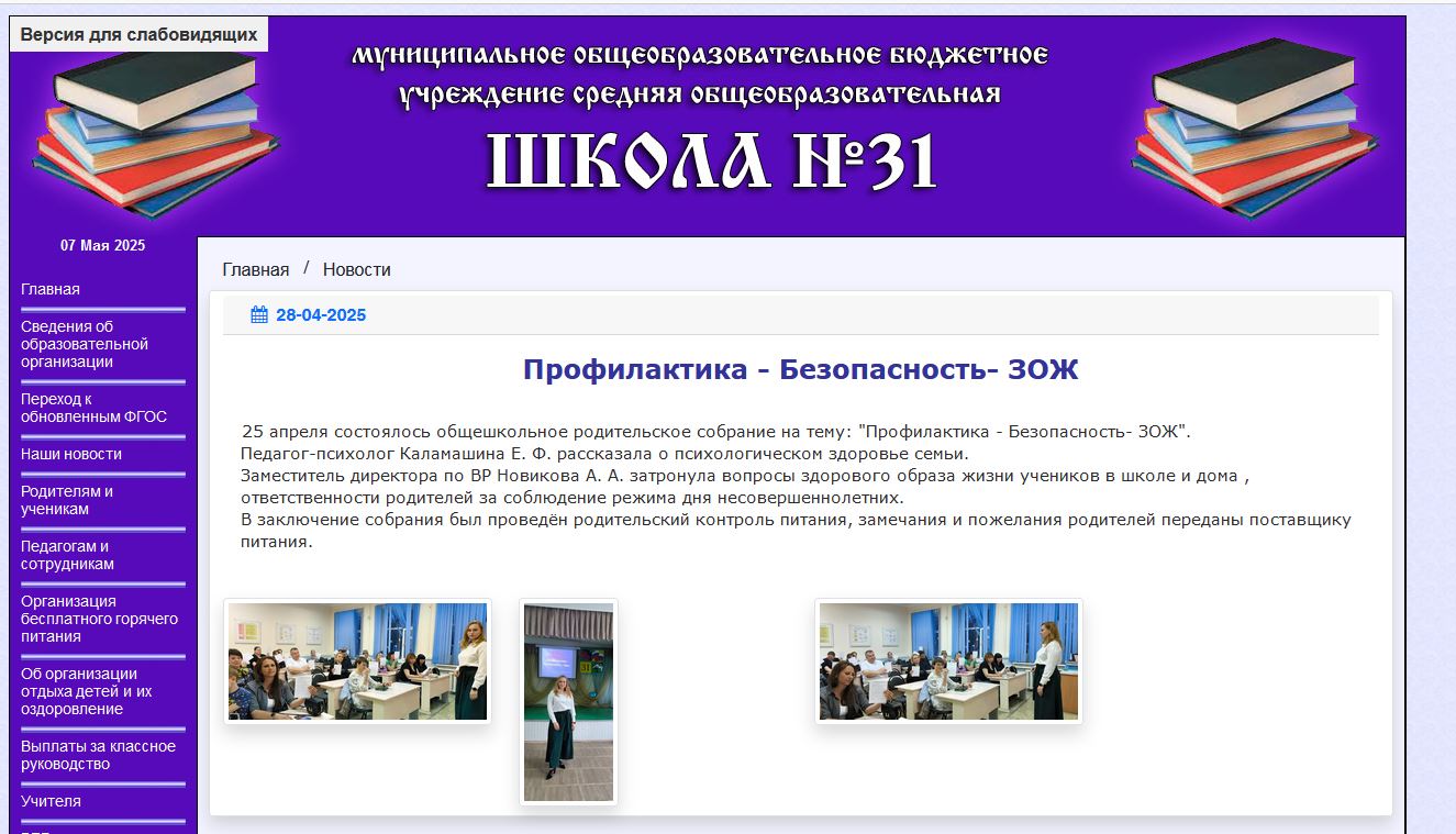 347909, ул. Бабушкина, 43, г. Таганрог, Ростовская область, Телефон/Факс: 8 (8634) 601-201, e-mail: sch31@tagobr.ru