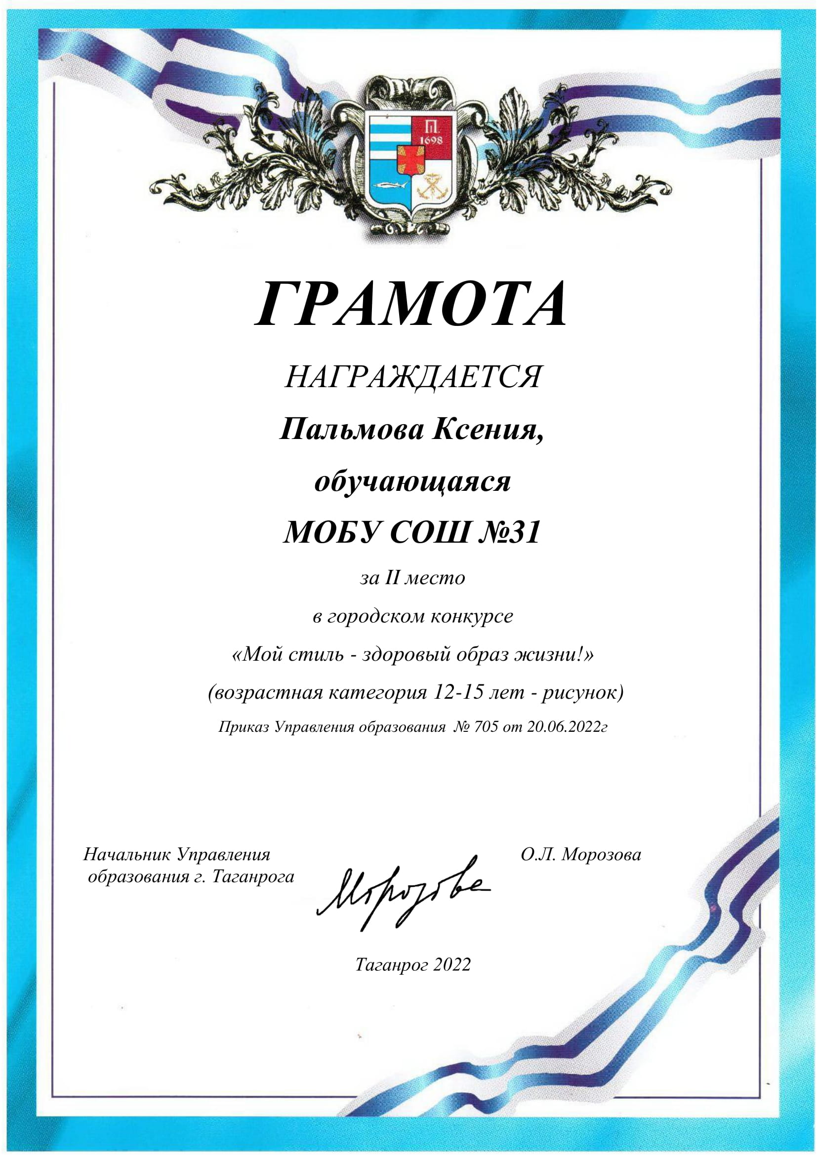 21.06.2022 г. поздравляем Пальмову Ксению и Вытовтову Анну, занявших II место в городском конкурсе рисунков среди воспитанников пришкольных лагерей "Мой стиль-здоровый образ жизни" (руководитель Букреева О.А.)!