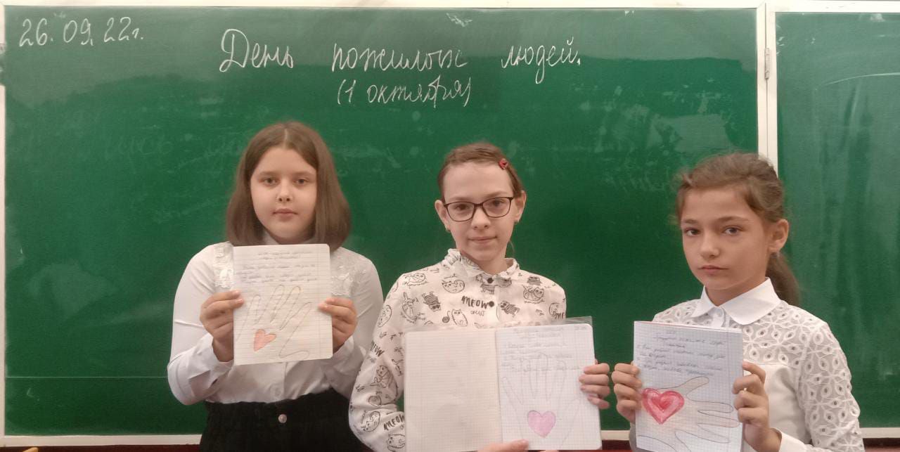 К Дню пожилых людей в школе прошел ряд мероприятий : выставка в библиотеке , занятие из цикла "Разговоры о важном"