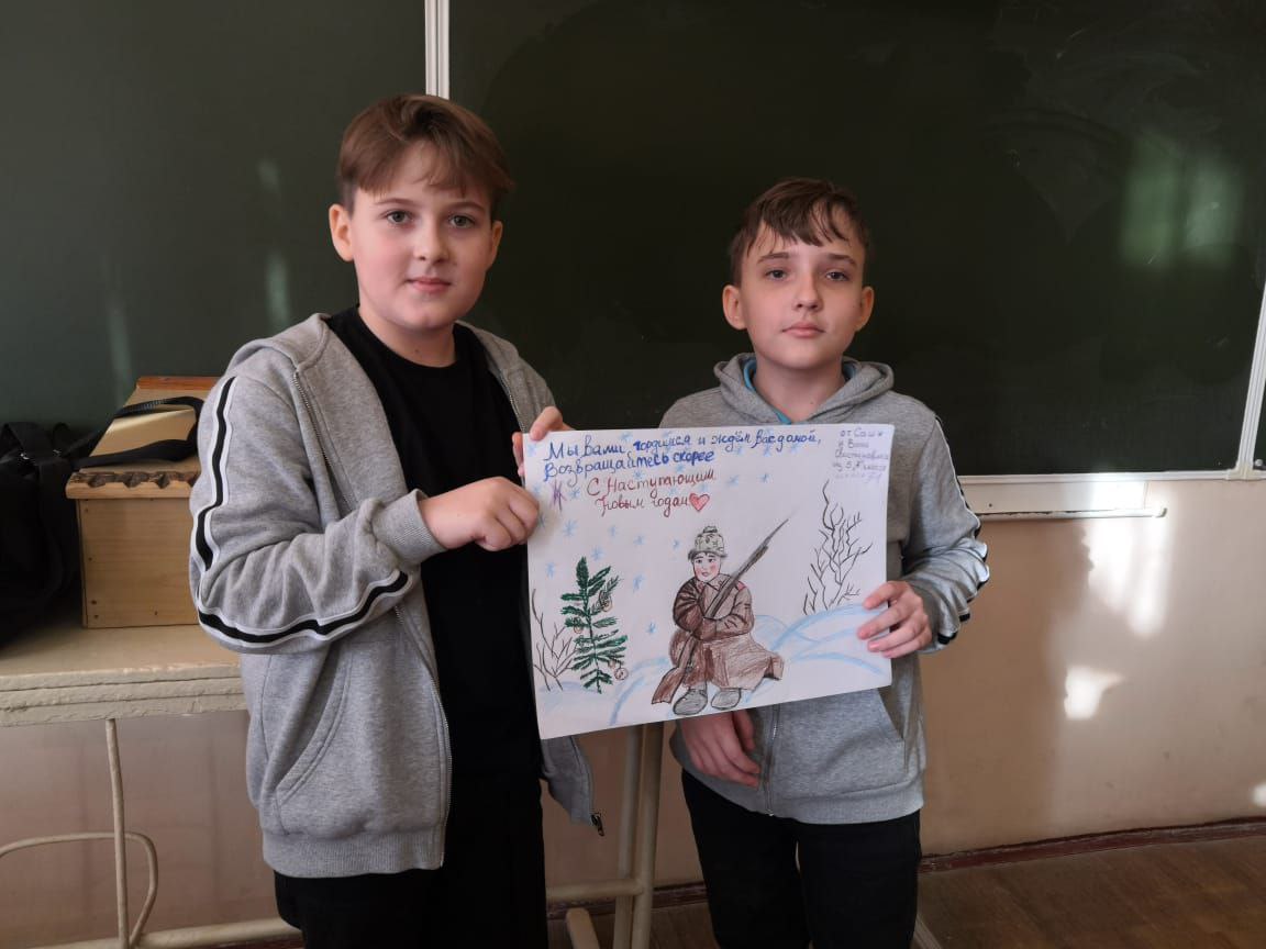 16.12. 5 "А" (классный руководитель Поляк М. В.) принял участие в акции "Добро Своим" и передал поздравления для участников СВО к празднику Новый год