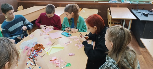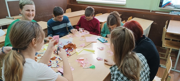 Обучающиеся школы совместно с советником директора по ВР приняли участие в Тимуровском движении и подготовили открытки для учителей пенсионеров.