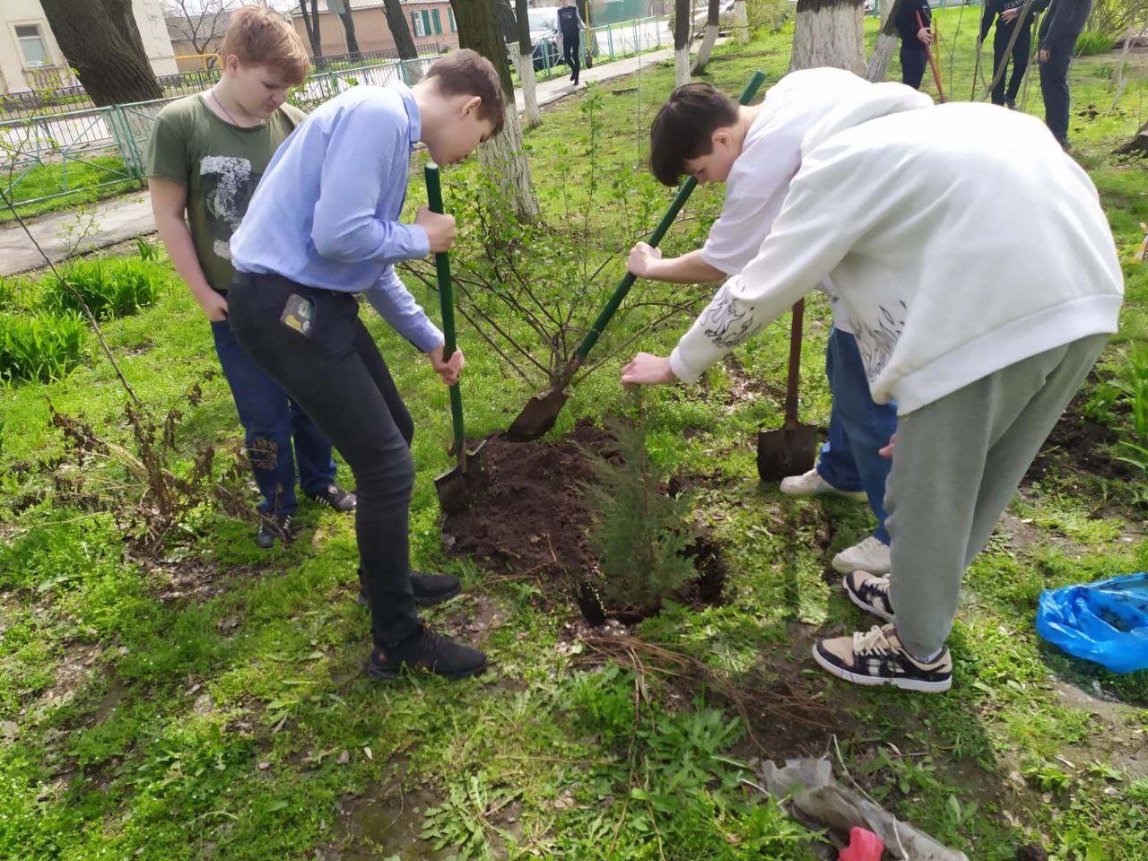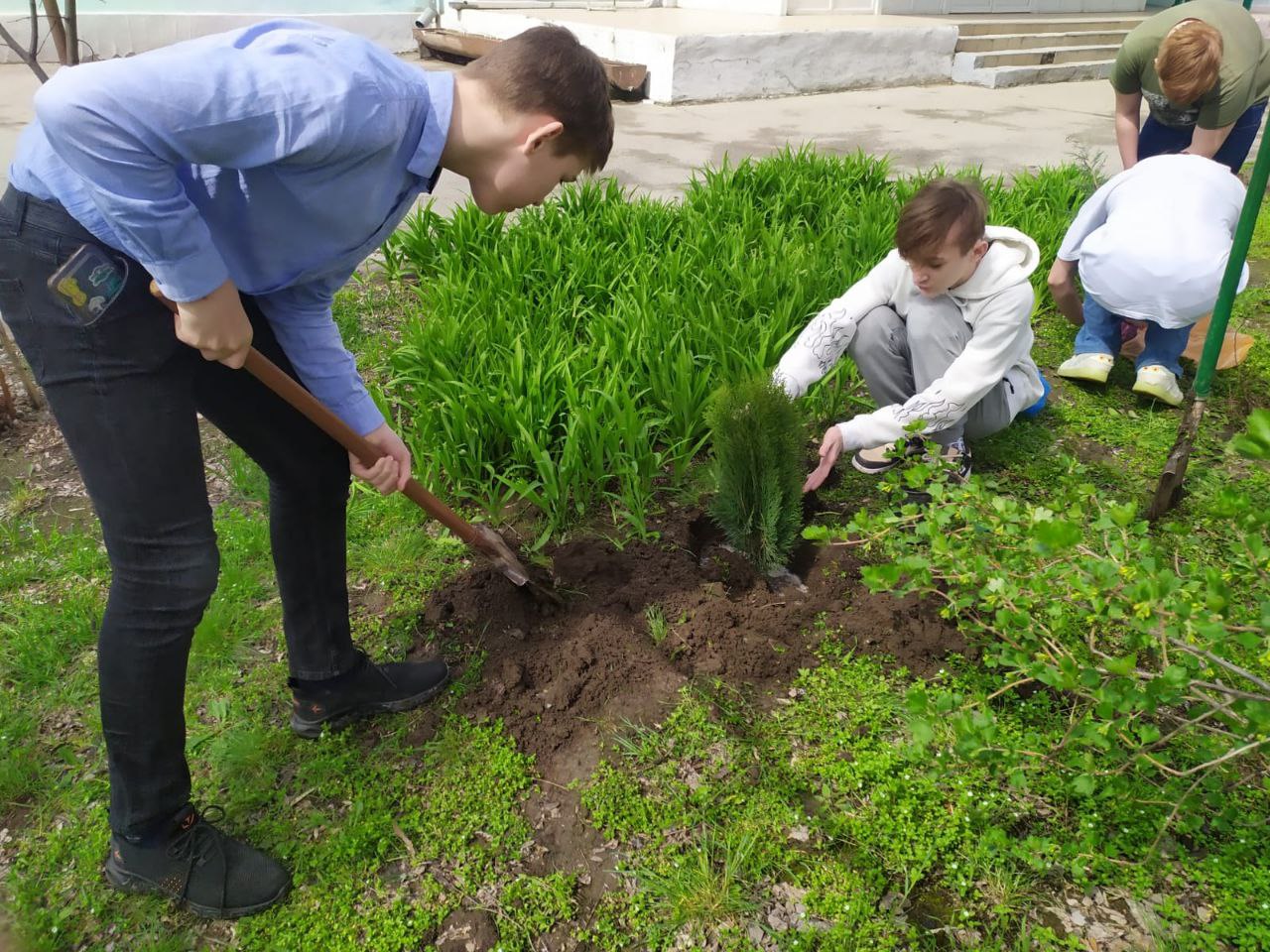 Отряд волонтёров МОБУ СОШ № 31 принял участие в Дне древонасаждения.Также им помогали активисты Юнармии и Движения первых