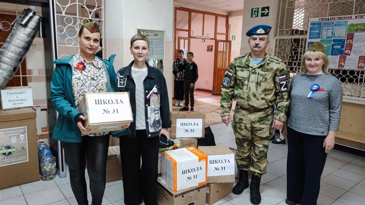 Советники директора по ВР Пругло А.В. и Каламашина Е.Ф. при поддержки администрации школы и активном участии директора Андрея Валерьевича Чудного организовали гуманитарный сбор.