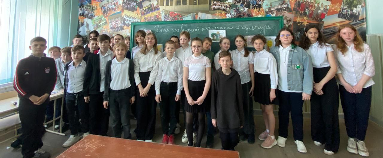 В рамках недели славянской письменности и культуры был проведён обучающимся 5 «А» класса тематический урок «Слов русских золотая россыпь» (Учитель русского языка и литературы Поляк М.В.). Ребятам была представлена история праздника, которая начинается с IX века, ученики подготовили информацию о жизни Кирилла и Мефодия, их странствиях и создании славянского алфавита.