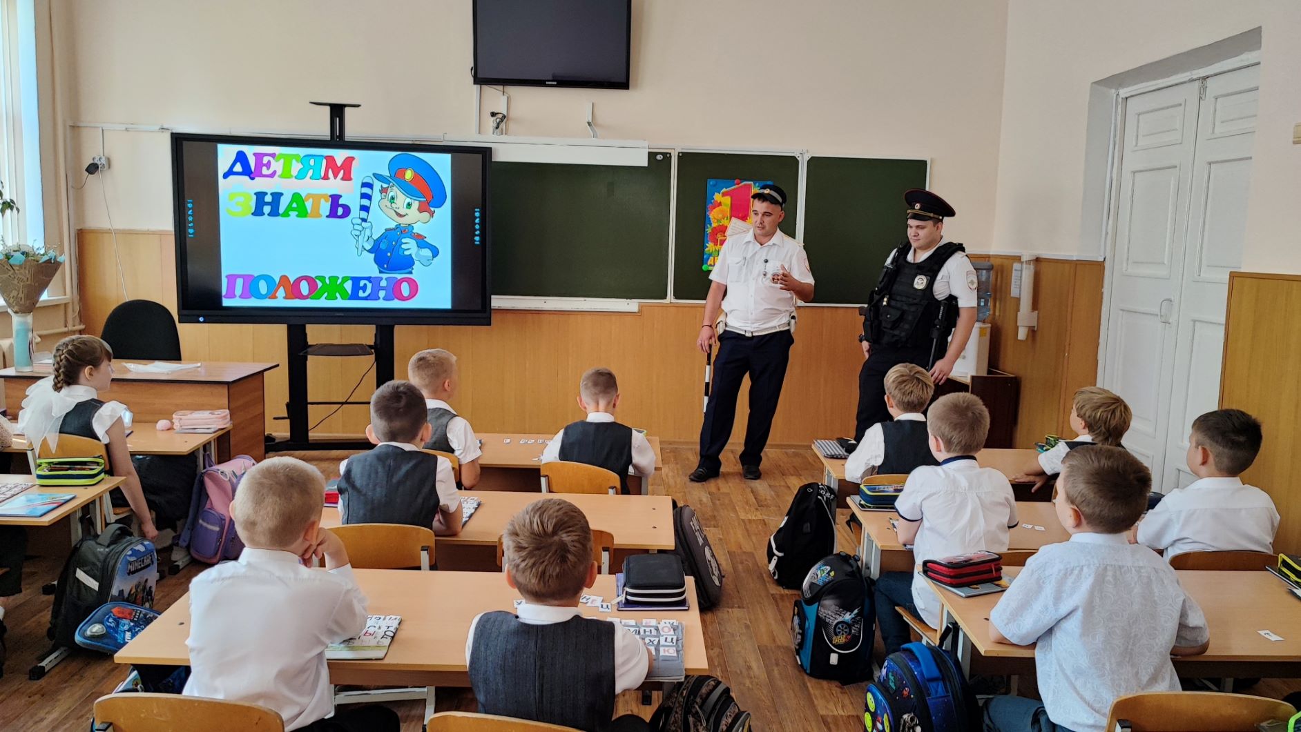 Инспектором ДПС ОР ДПС ОГИБДД УМВД РФ по г. Таганрогу Толкачевым Р.С. были проведены профилактические беседы по безопасности на дорогах с обучающимися 1-4 классов МОБУ СОШ № 31.