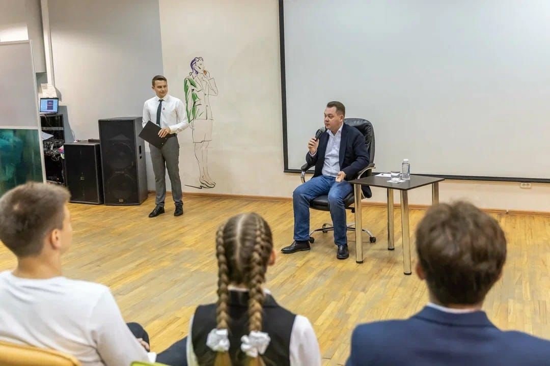 Обучающиеся нашей школы Новиков Сергей, Михай София, Чернова Олеся, Кузовенкова Алина приняли участие в мероприятии и смогли задать вопросы Главе Администрации г. Таганрога