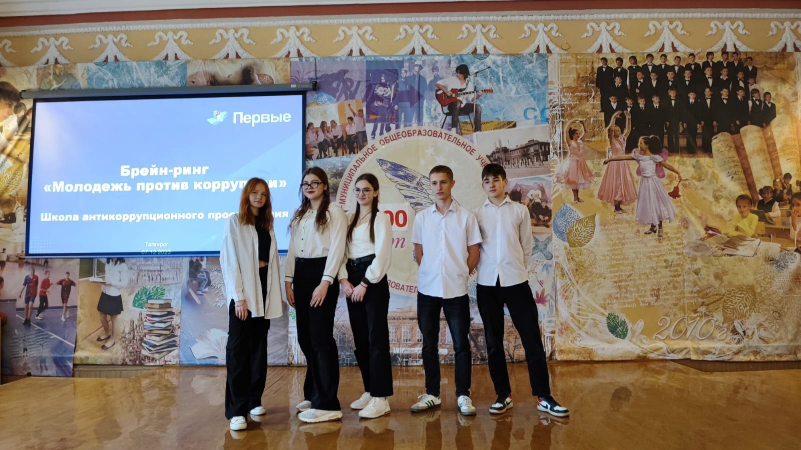 7 декабря на базе МАОУ СОШ № 10 г. Таганрога состоялось очередное занятие школы антикоррупционного просвещения в игровом формате брейн-ринга "Молодёжь против коррупции". Организаторами мероприятия выступили Управление образования г. Таганрога и местное отделение. Брейн-ринг состоял из 6 раундов в которых ребята придумали ассоциации к слову коррупция, сформулировали опредениение, составили кластер о её причинах, нарисовали "портрет" коррупции, решали правовые задачи и даже разработали авторскую стратегию борьбы с коррупцией с позиций различных социальных групп. В завершение мероприятия ведущий методист Управления образования города Таганрога Наталья Николаевна Шведова наградила участников игры сертификатами.