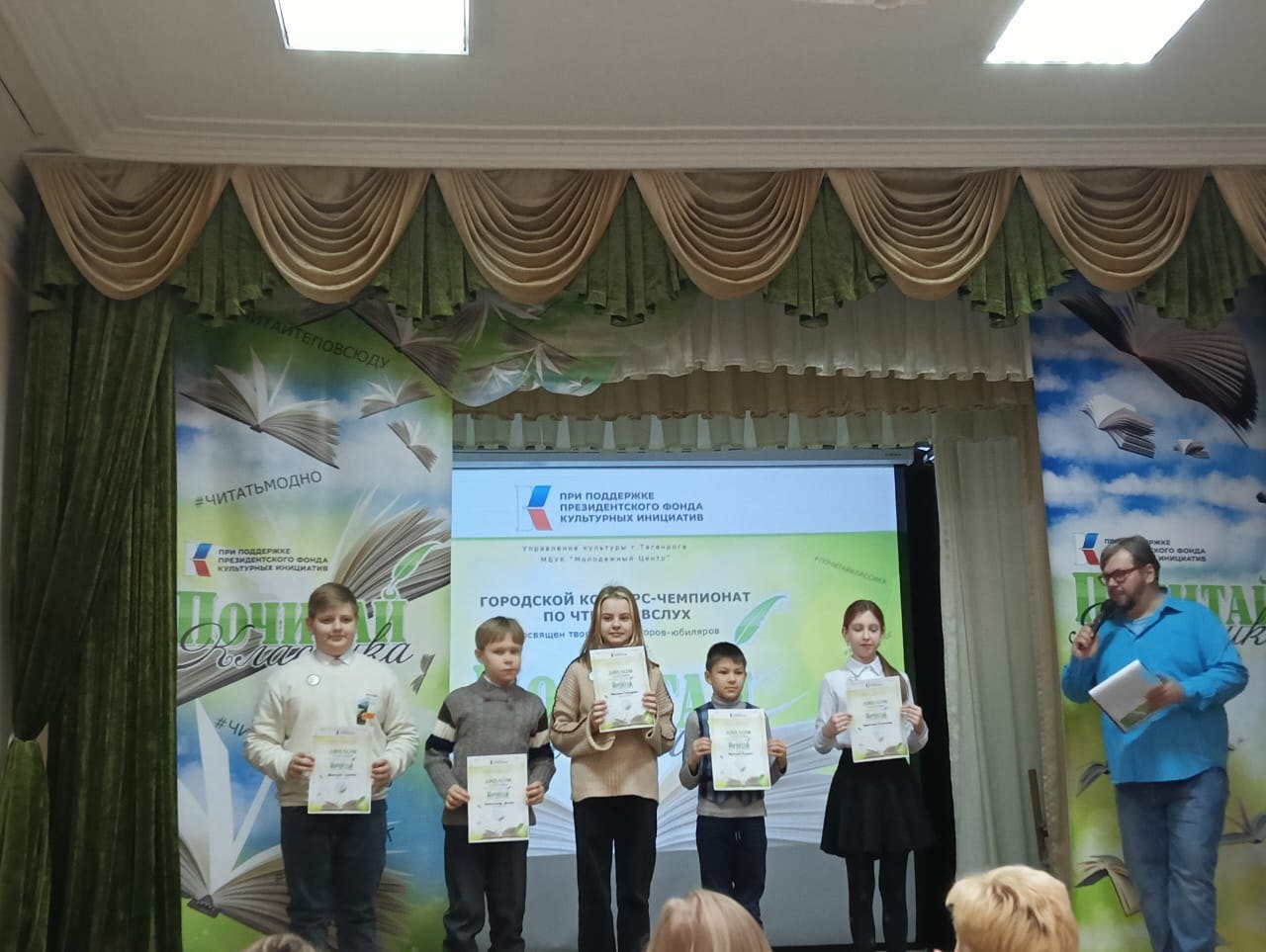 31 января состоялся первый этап городского конкурса-чемпионата по чтению вслух «Почитай классика». Нашу школу достойно представляли обучающиеся 4 а и 4 б классов. Пасечник Марк вышел в полуфинал. Поздравляем Дочук Александра, Пахомову Елизавету 4 а класс ( учитель Бурмистрова С. Ю..) ,Дубницкую Екатерину,Русакову Кристину 4 а класс ( учитель Дьяковская М. А. ) с дипломами участников!