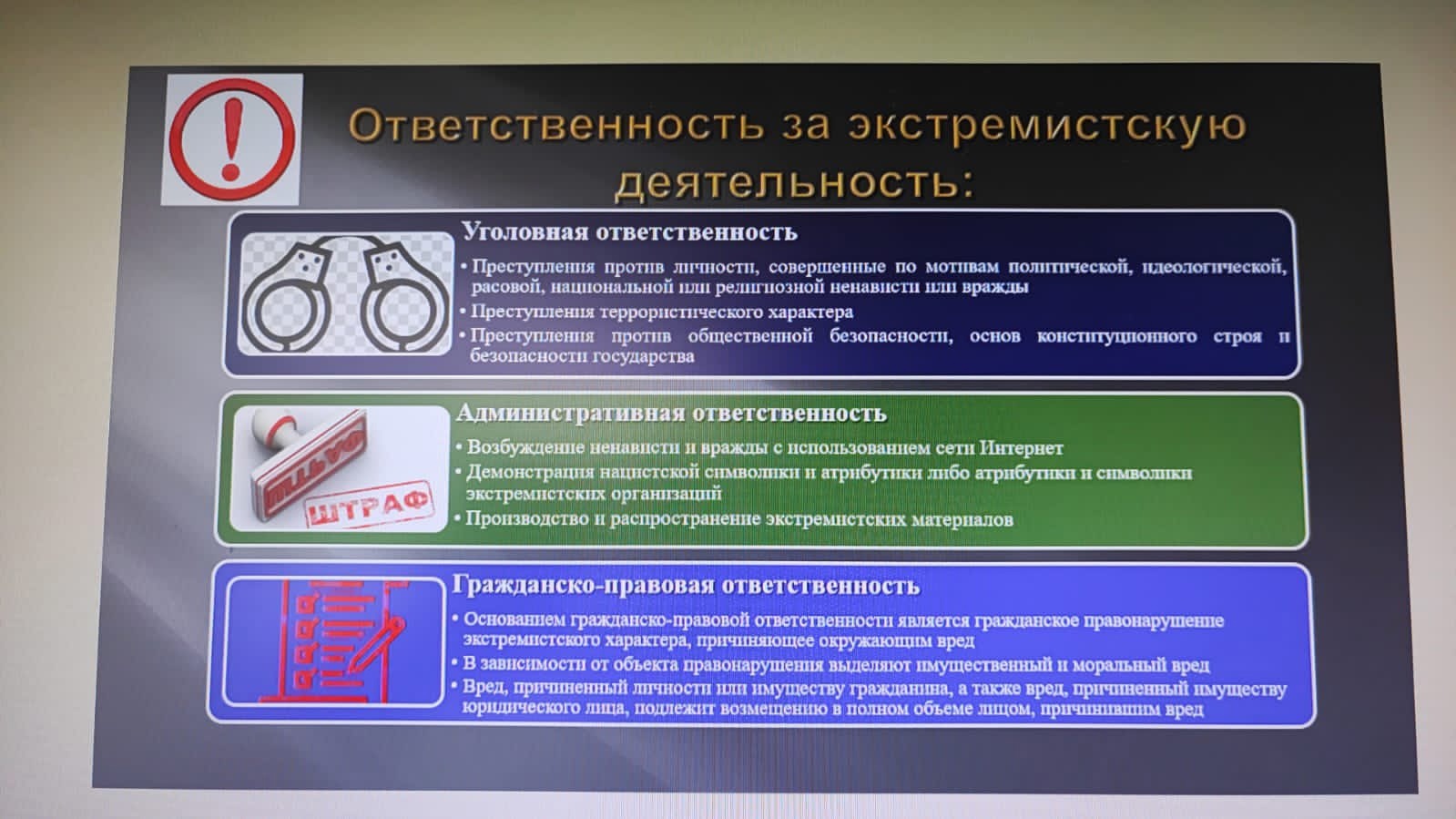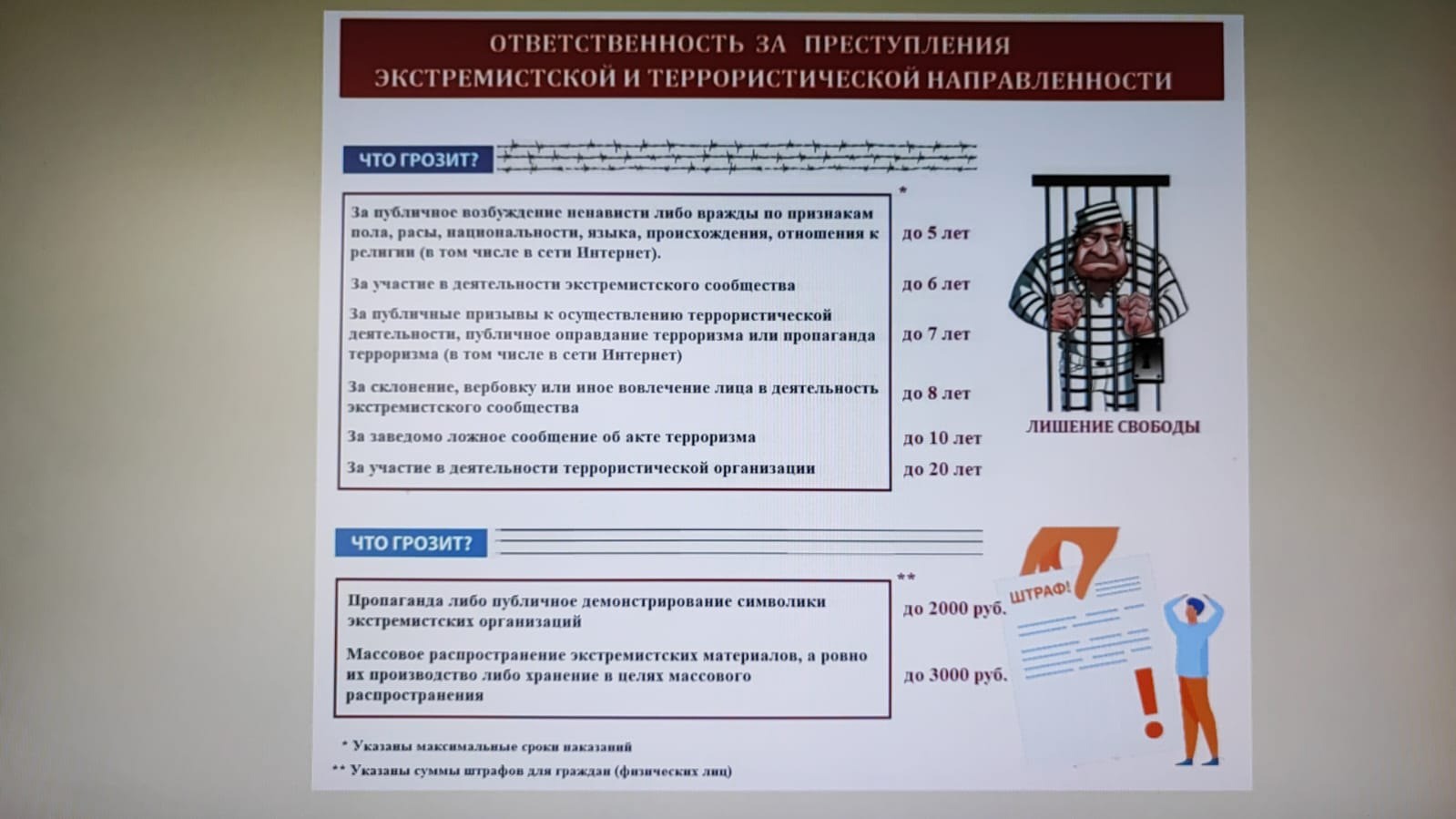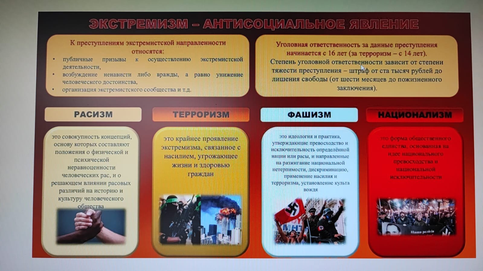 13 февраля проводится родительский школьный всеобуч на тему: "Правовая ответственность родителей (законных представителей) и детей за совершение правонарушений, в том числе экстремистской направленности". Сотрудниками УМВД России по г. Таганрогу с администрацией школы была проведена информационно-просветительская беседа. Классными руководителями были разосланы памятки и разъяснительные материалы с целью повышения правовой грамотности родителей ( законных представителей).