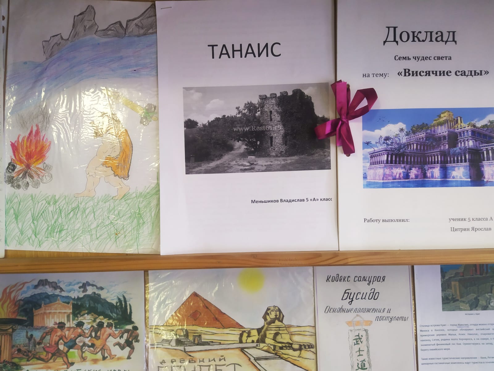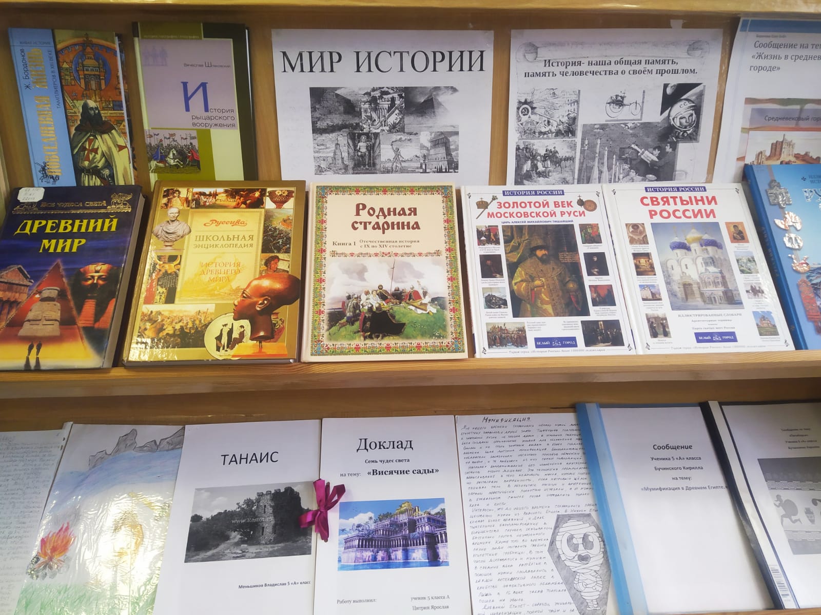 Проведены конкурс-выставка стенгазет «По следам прошлого», а также тематическая выставка «Мир истории» (учитель истории Соболева И.Г.).