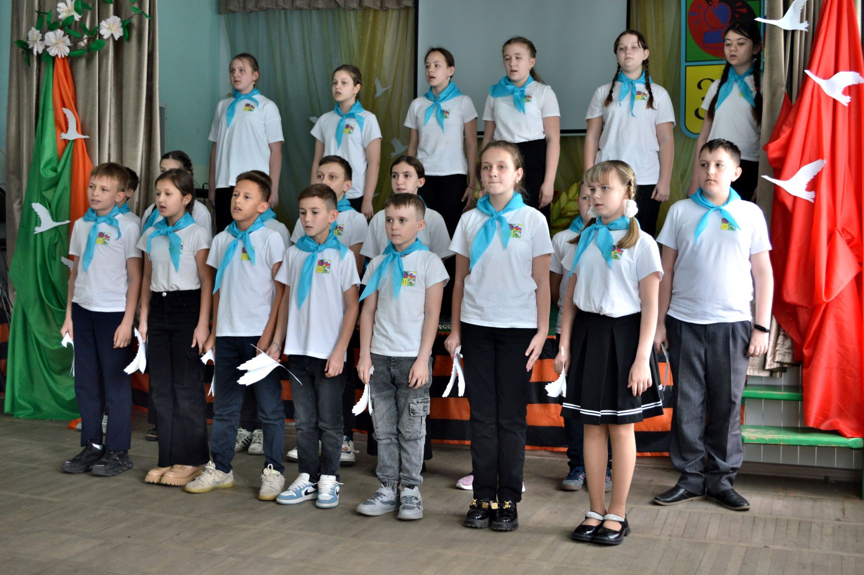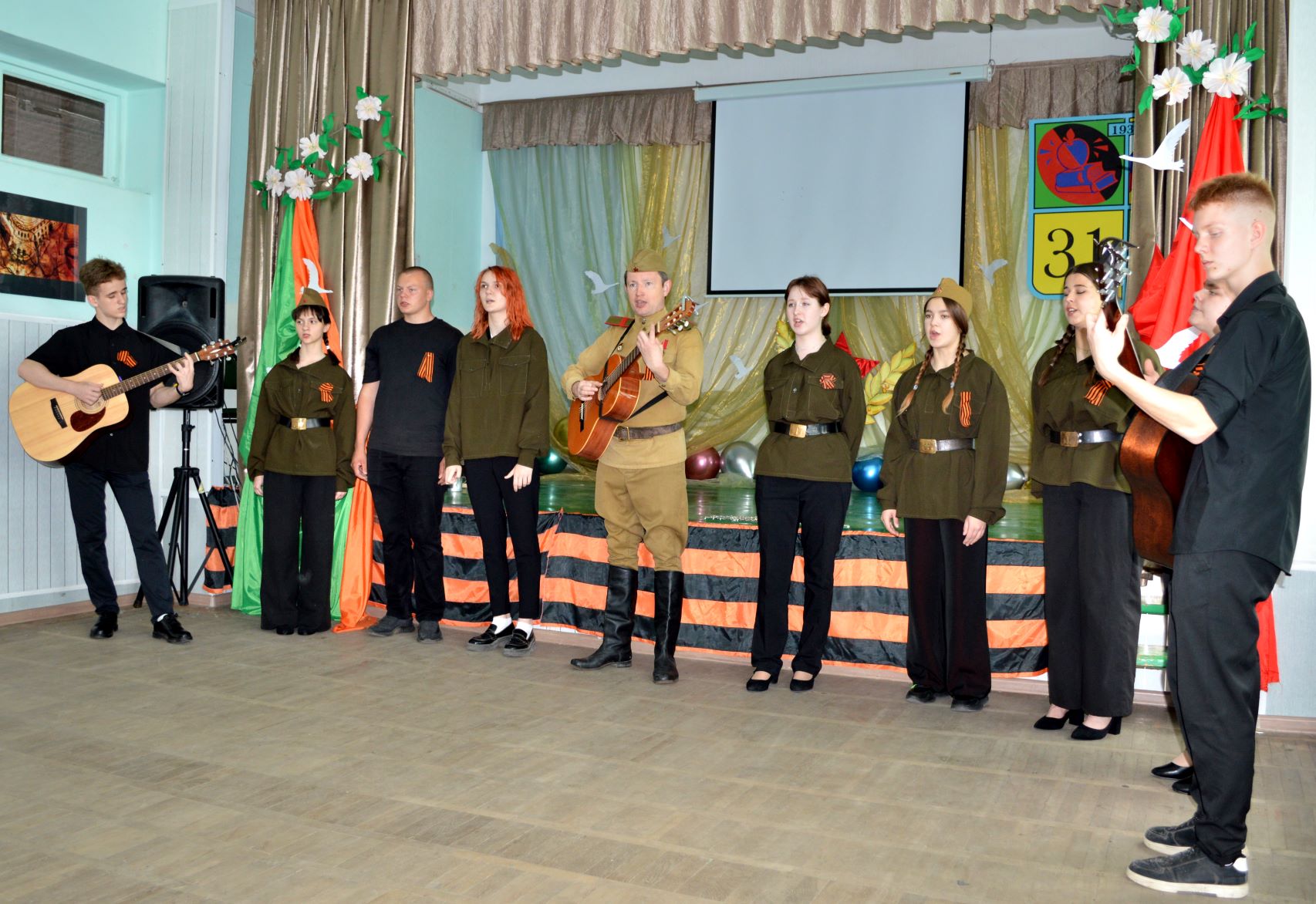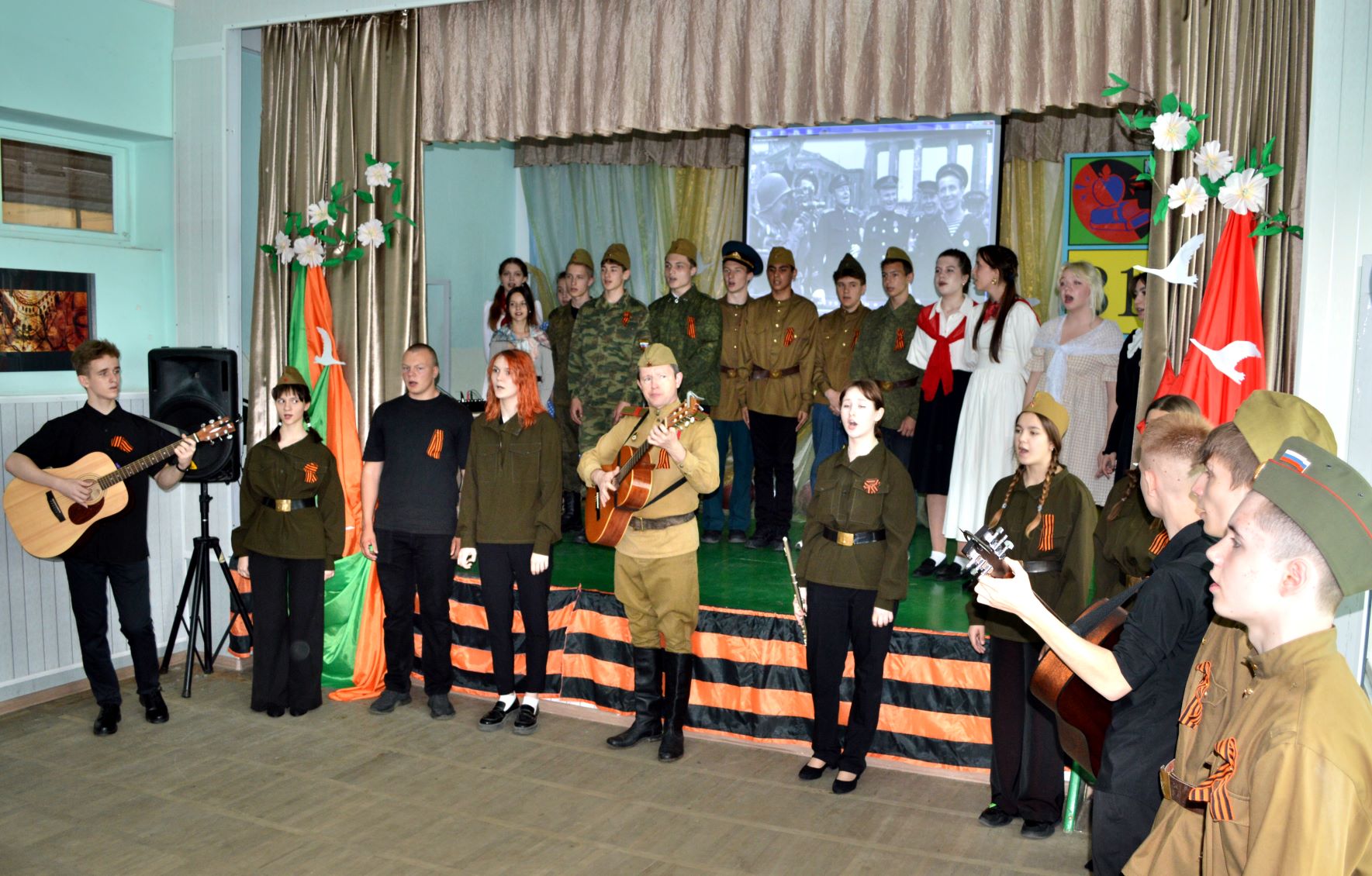 Обучающиеся школы под руководством руководителей музыкального театра "ArtMix" Готвянской Г. М. и Резанова И. Н. подготовили музыкально - драматическую композицию "Этих дней не смолкнет слава".
