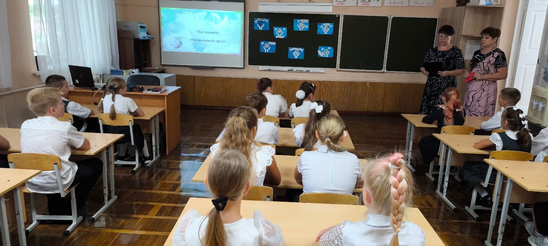 В День солидарности в борьбе с терроризмом, в память о невинных ангелах, о детях-заложниках в начальной школе прошли классные часы «Прерванный урок».