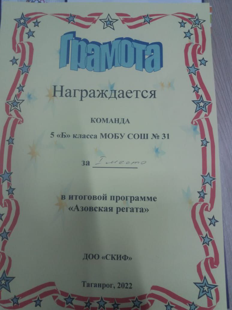 5 б класс занял 1 место в игре конкурсе Азовская регата.