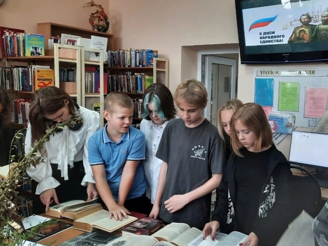 Мероприятие было посвящено празднику, который олицетворяет мужество и героизм русского народа, сплотившегося перед лицом общей опасности. Ребята послушали увлекательный рассказ об истории праздника, просмотрели видеоролик, с интересом приняли участие в викторине, ознакомились с оформленной тематической выставкой, на которой представлены книги, посвященные теме народного единства, а также издания о жизни и деятельности Кузьмы Минина и Дмитрия Пожарского, о народном ополчении, о событиях Смутного времени.