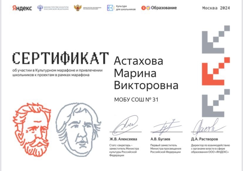 Обучающиеся 5 «Б», 7 «А», 8 «А», «Б» классов (Учитель литературы Астахова М.В.) приняли участие в культурном марафоне в тестовом формате.