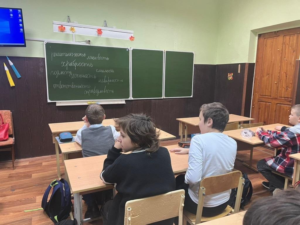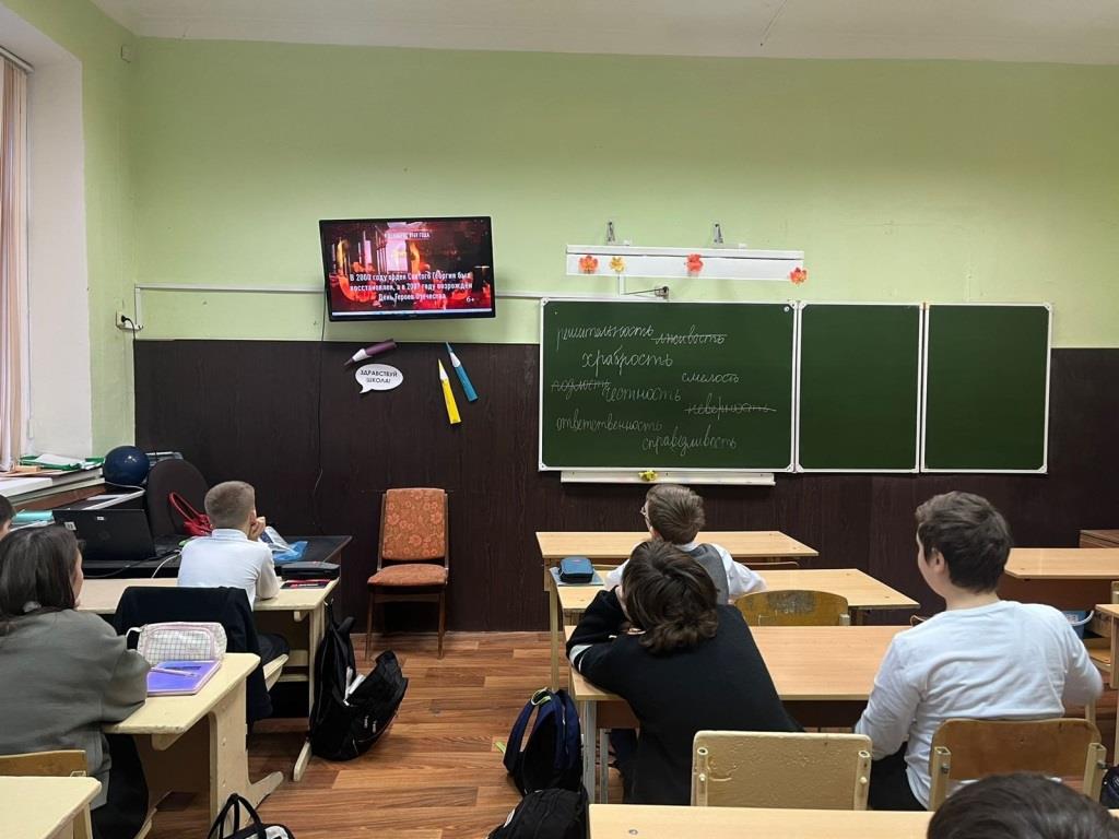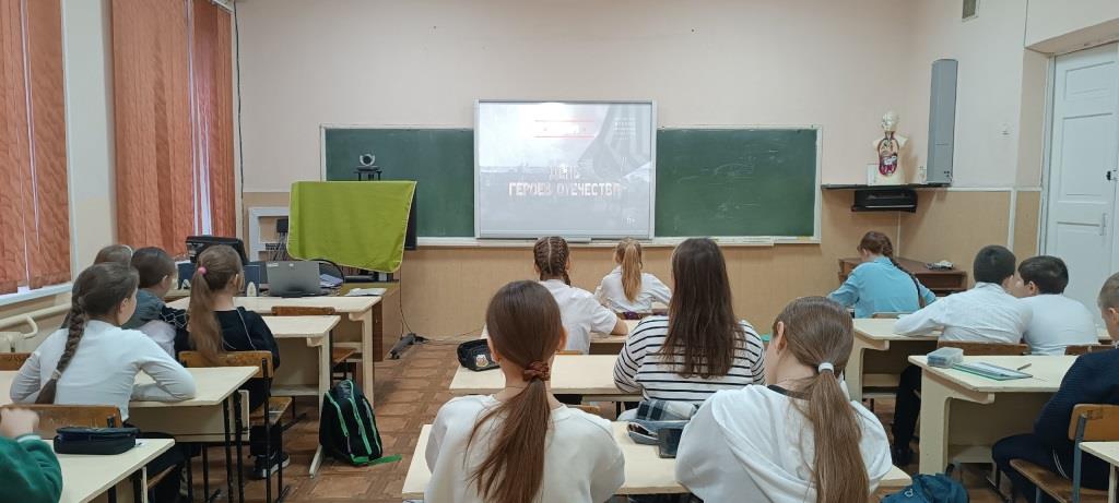 Классными руководителями при содействии советников директора по ВР Пругло А. В. и Каламашиной Е. Ф. были проведены разговоры о важном. Тема урока: "День Героев Отечества".