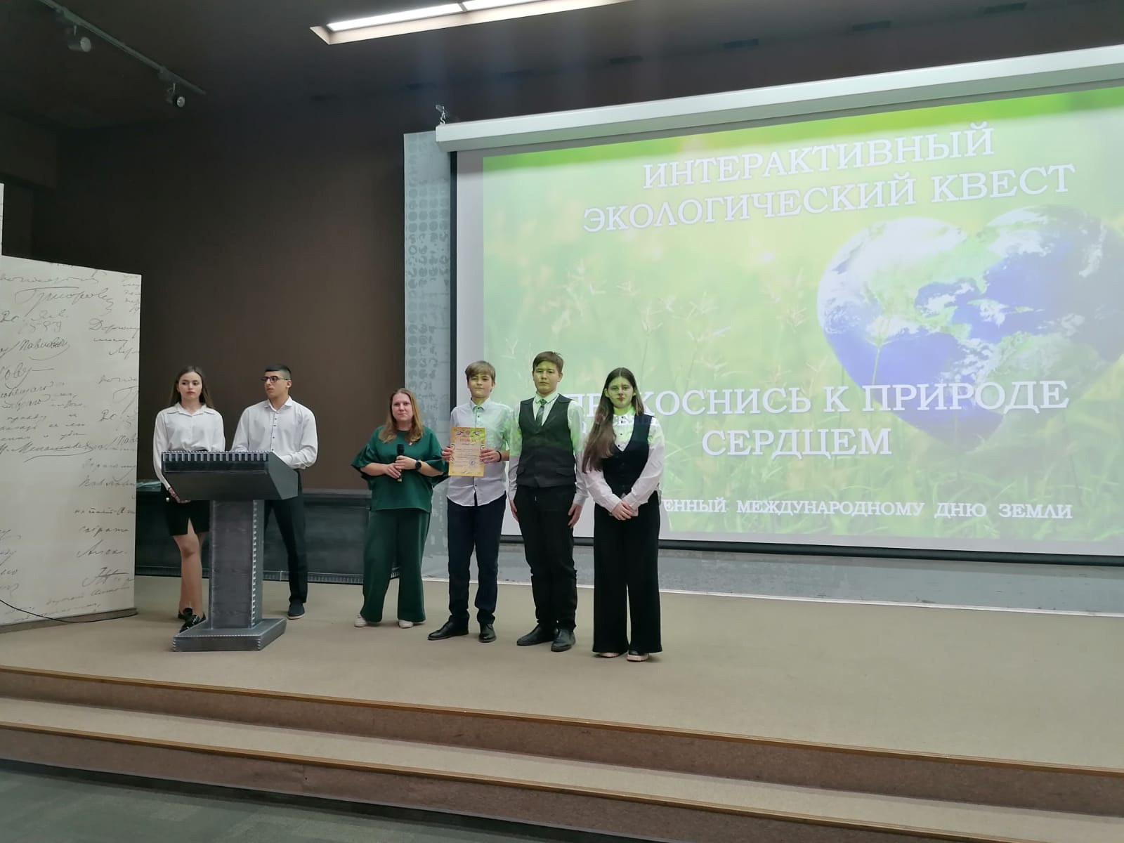 Поздравляем команду 7б класса с 3 местом в городском интерактивном квест-марафоне «Прикоснись к природе сердцем», посвящённом Международному Дню Земли.
