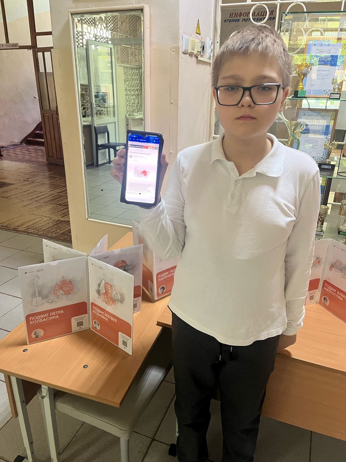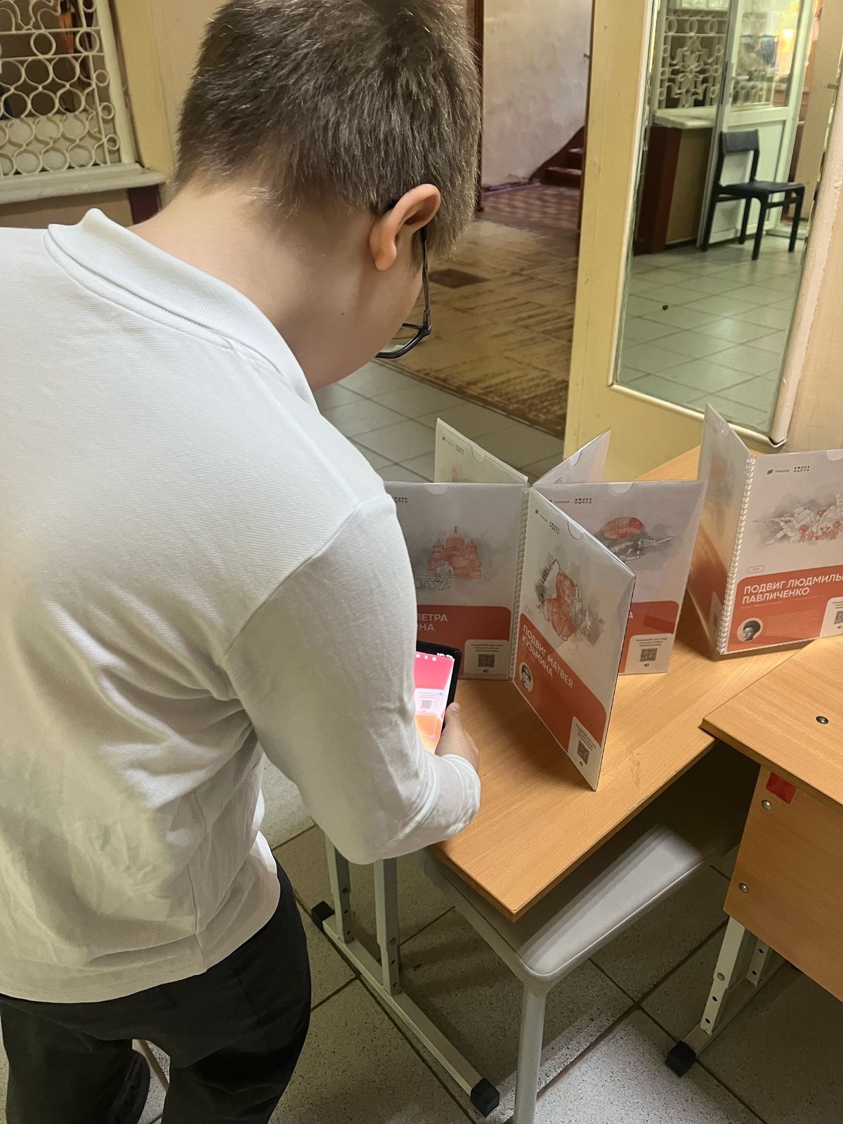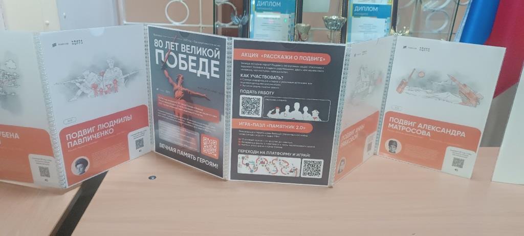 В преддверии празднования 80 летия Великой Победы в фойе школы организовали выставку медиапроекта