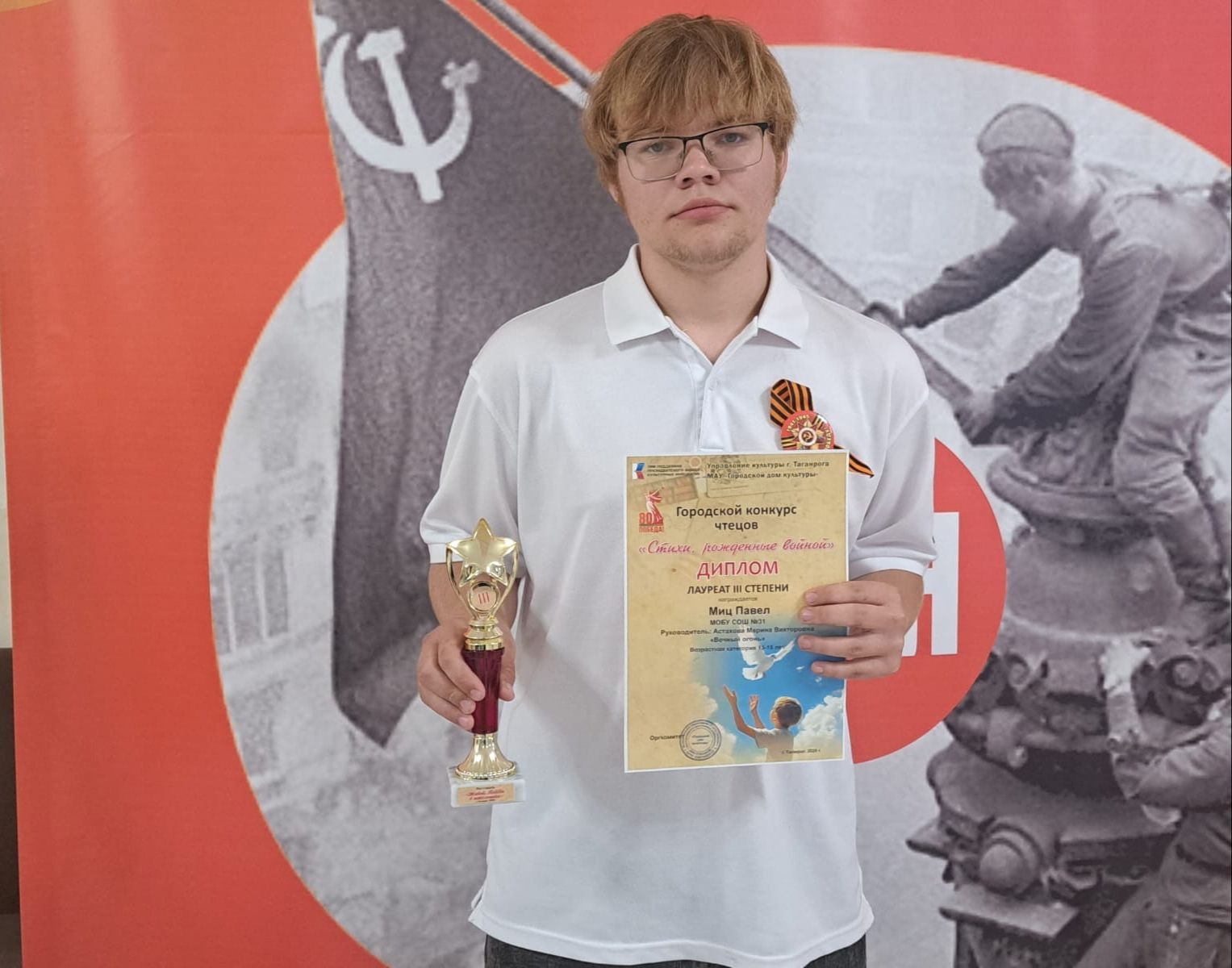Миц Павел – Лауреат ||| степени городского конкурса чтецов «Стихи, рождённые войной» (Учитель литературы Астахова М.В.)