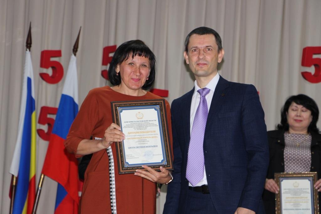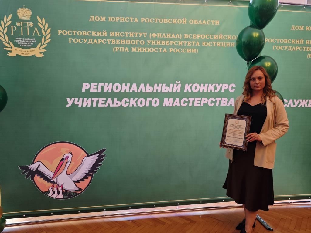 В региональном конкурсе «ЗАСЛУЖЕННЫЙ УЧИТЕЛЬ ДОНА», который проводился Ростовским домом юриста под эгидой Главного управления Министерства юстиции РФ по Ростовской области среди учителей общеобразовательных учреждений региона, наши конкурсанты стали победителями.