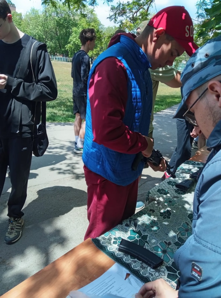 Их ждали такие дисциплины как: оказание первой помощи раненому и его эвакуация с поля боя; неполная сборка-разборка автомата АК; снаряжение магазина АК патронами на время; метание гранаты с колена; снятие растяжки с помощью кошки и надевание ОЗК и противогаза.