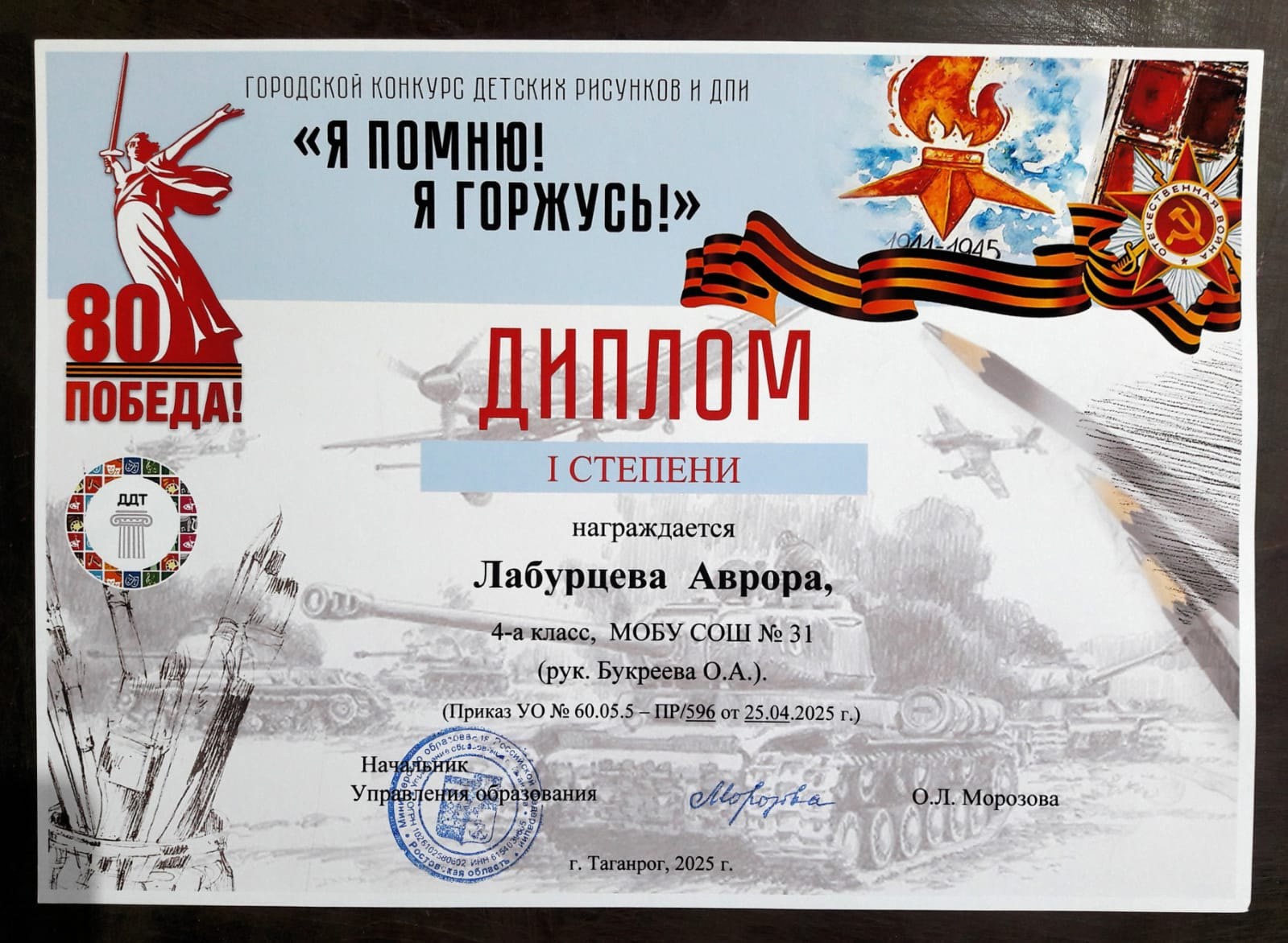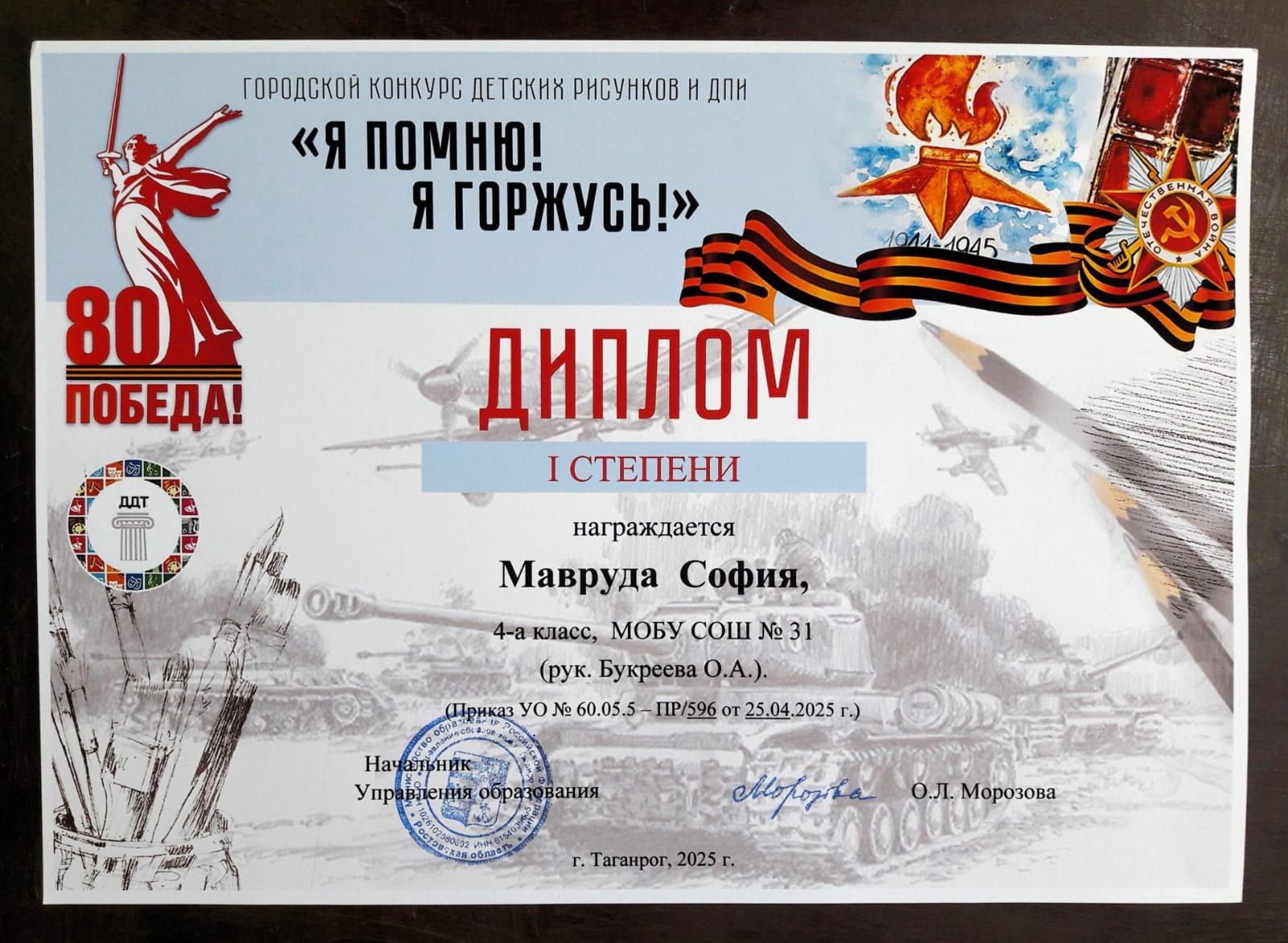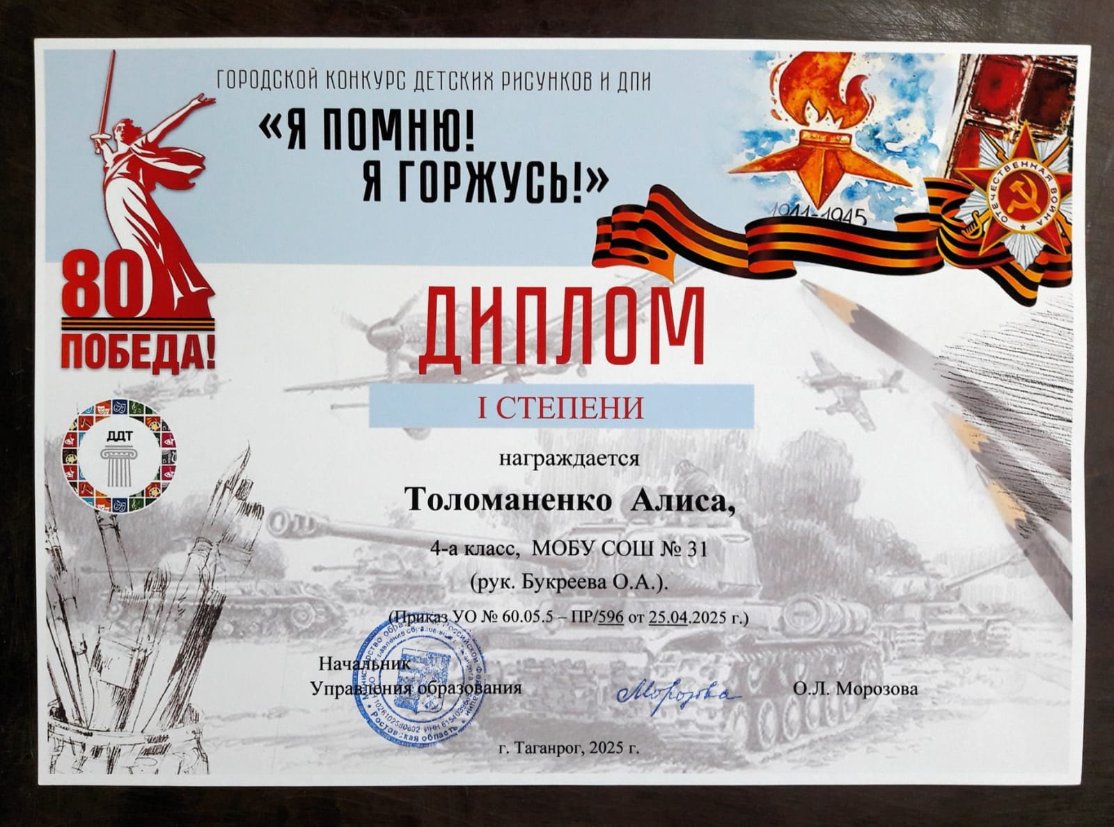 Обучающиеся школы победители в городском конкурсе рисунков, посвящённом Дню Победы.
