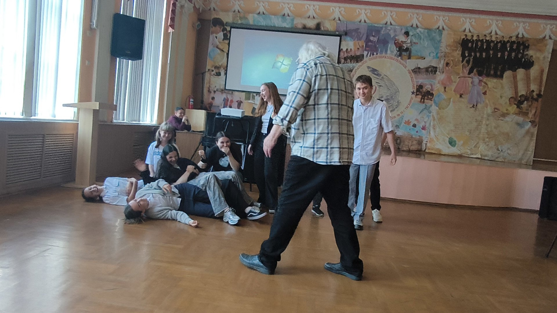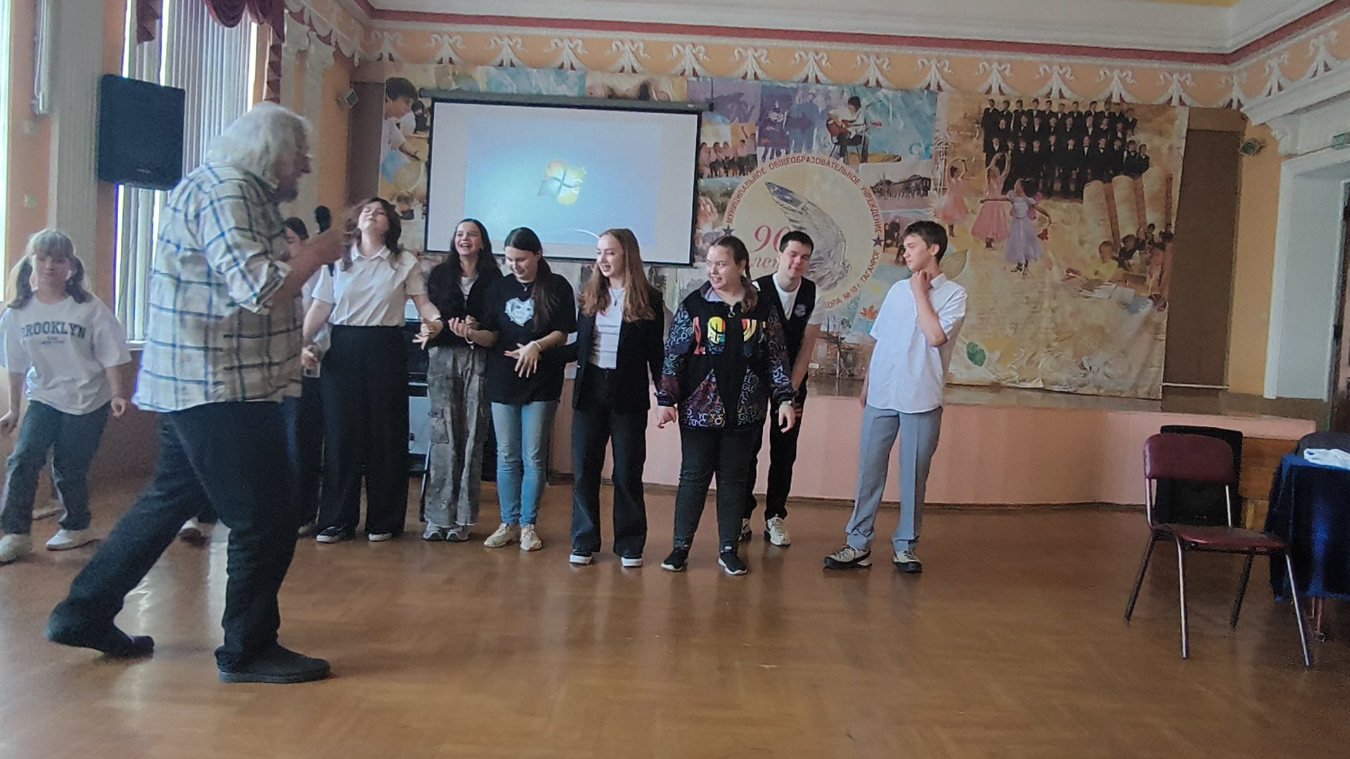 В рамках проведения 16-18 мая в городе Таганроге 18-го Чеховского книжного фестиваля 16.05.2025 в МАОУ СОШ № 10 участники киноклуба 6-б класса приняли активное участия в мероприятии «Поговорим о кино» с Михаилом Мокиенко.