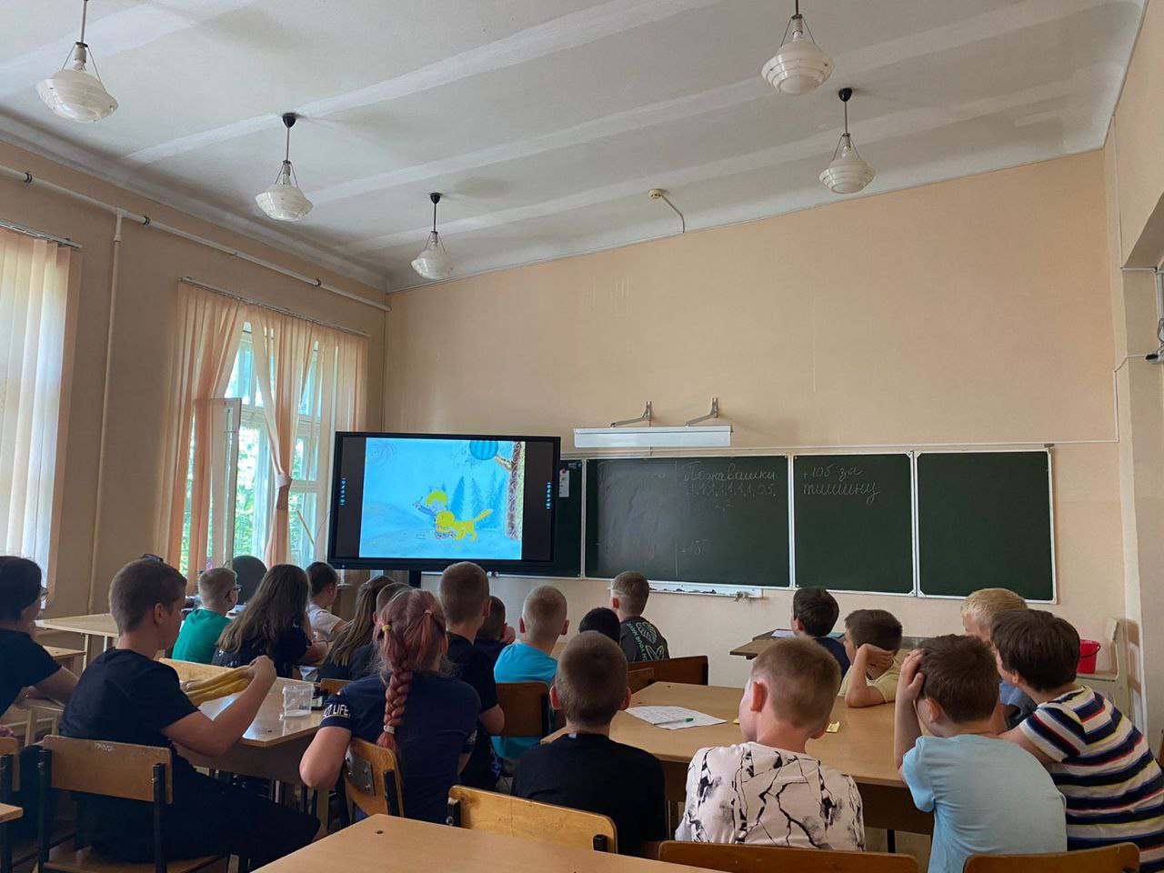Ребята вспомнили историю возникновения русского языка, решали ребусы, писали стихи, отвечали на вопросы викторины «Там на неведомых дорожках», а также посмотрели мультфильм «В стране невыученных уроков».
