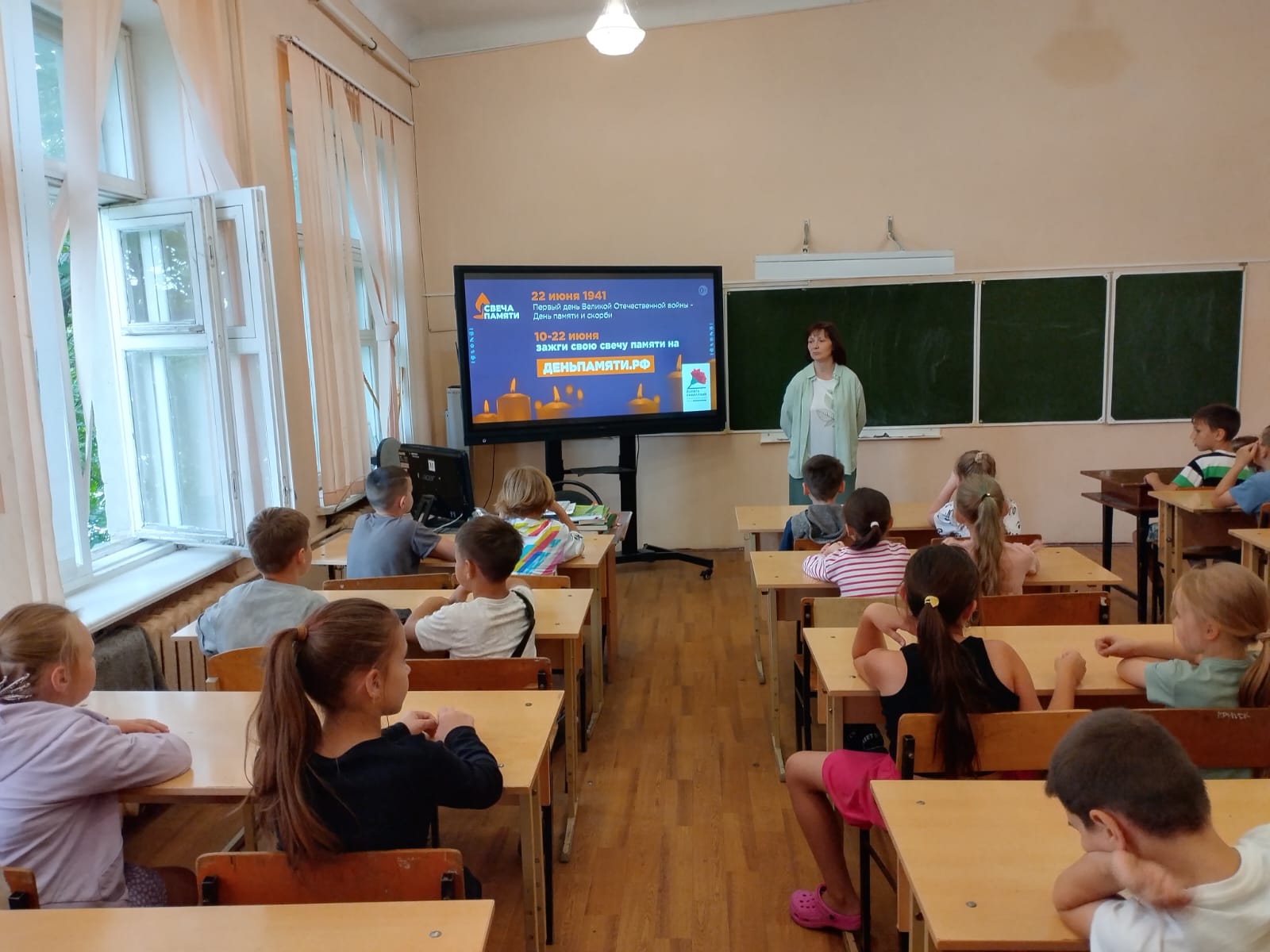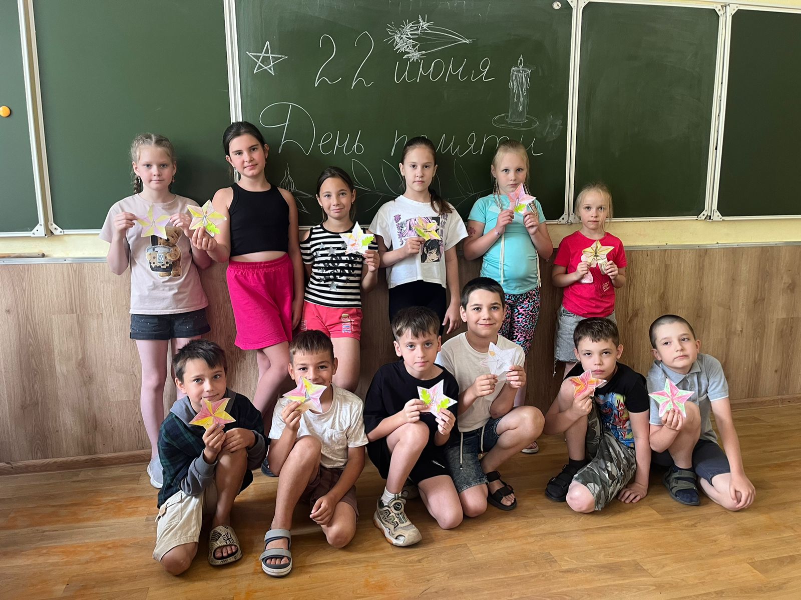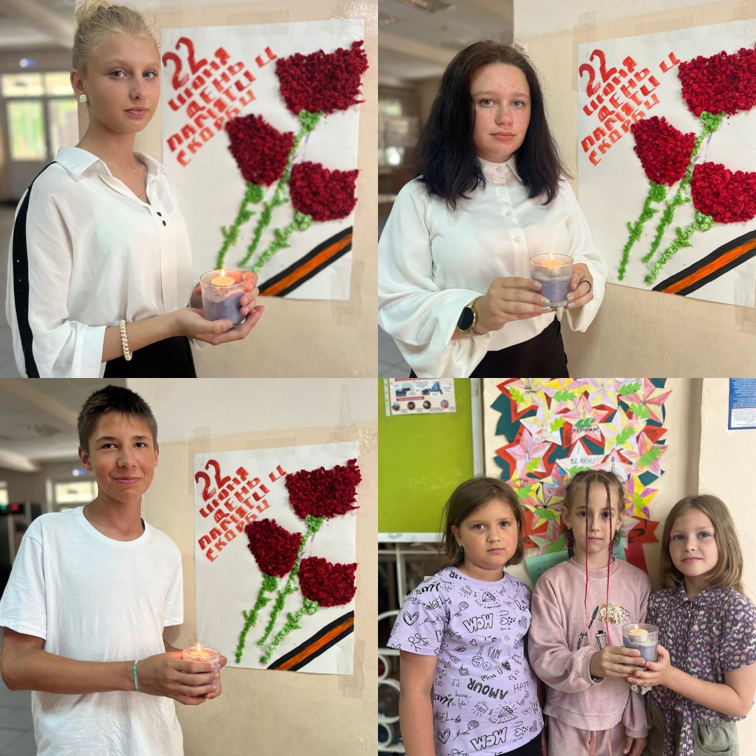 В День скорби и памяти воспитанники пришкольного лагеря приняли участие в акции «Свеча памяти», возложили цветы к памятнику «Чаша горечи».