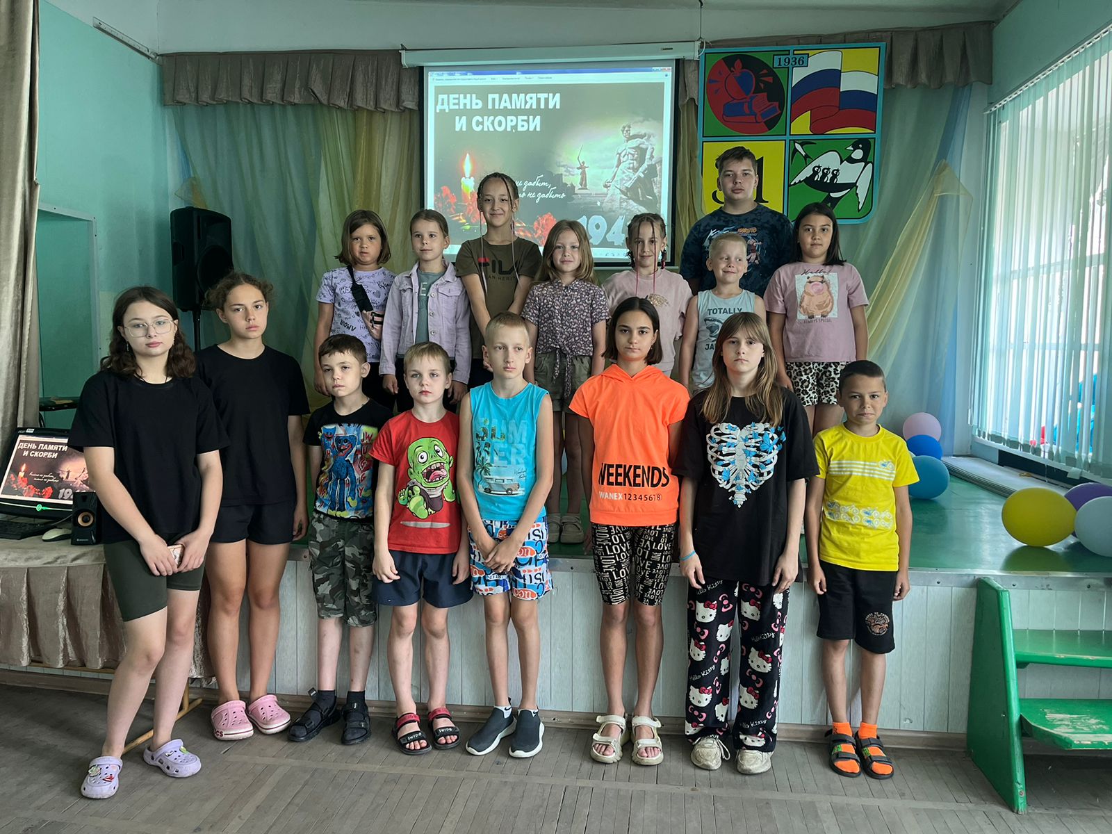 Есть события,над которыми время не властно,чем дальше в прошлое уходят годы,тем яснее становится их величие.К таким событиям относится Великая Отечественная война.День памяти и скорби 22 июня-годовщина начала Великой Отечественной войны. В этот день мы скорбим по всем,кто ценой собственной жизни защитил свободу своего Отечества.В летнем пришкольном лагере прошла торжественная линейка, посвящённая Дню памяти и скорби, ребята возложили цветы к памятнику "Чаша горечи", приняли участие в акции "Свеча памяти",почтили минутой молчания память погибших в этой страшной войне.