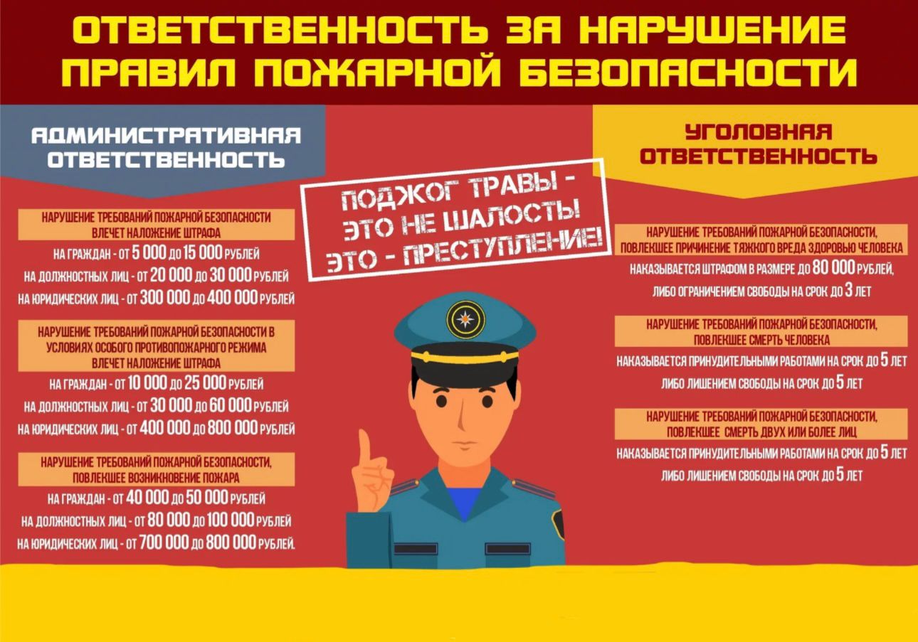 Внимание! Охрана общественного порядка Управления МВД России по городу Таганрогу предупреждает: нарушение требований пожарной безопасности и неосторожное обращение с огнем влекут за собой административную ответственность в виде штрафа, а в случае серьезных последствий уголовную ответственность! Забытая спичка, непотушенный окурок, нарушение правил эксплуатации электроприборов – все это может привести к трагедии! Будьте бдительны, берегите себя и окружающих!