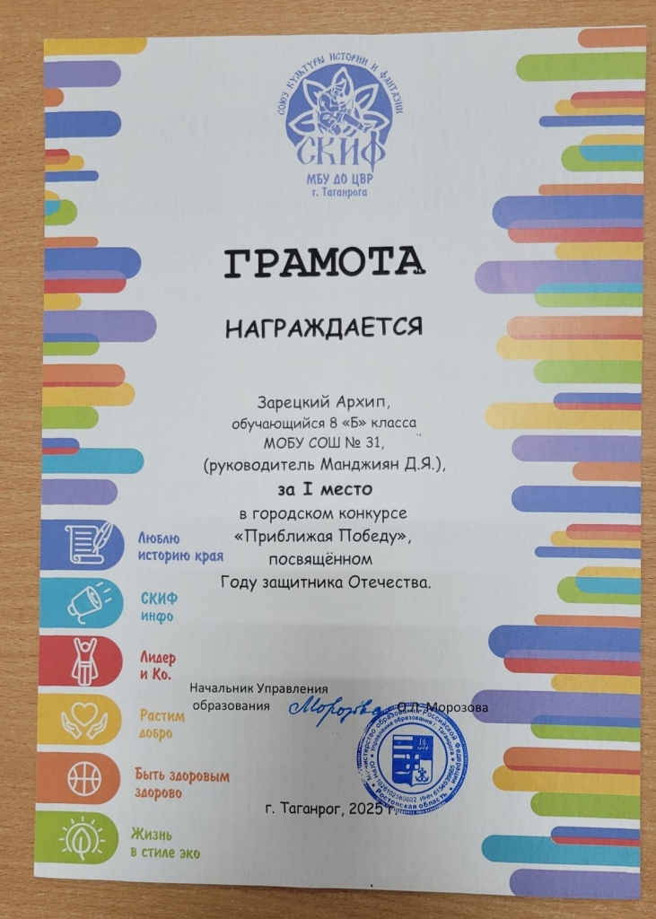 Зарецкий Архип занял 1 место, написав трогательную статью, о своем погибщем отце - участнике СВО.