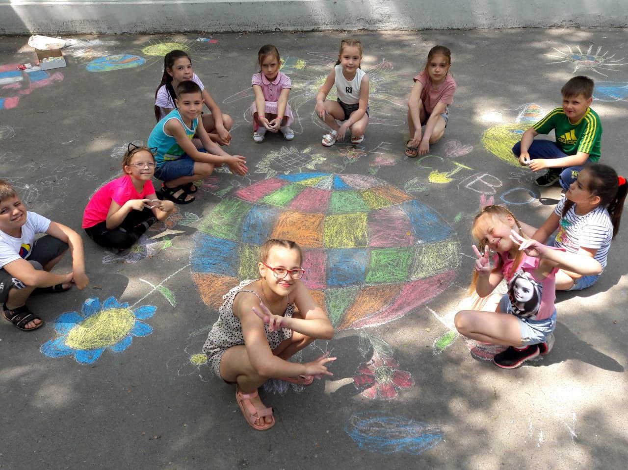 1 июня-Международный день защиты детей,в нашем лагере был проведён конкурс рисунков на асфальте,посвящённый этому замечательному празднику.